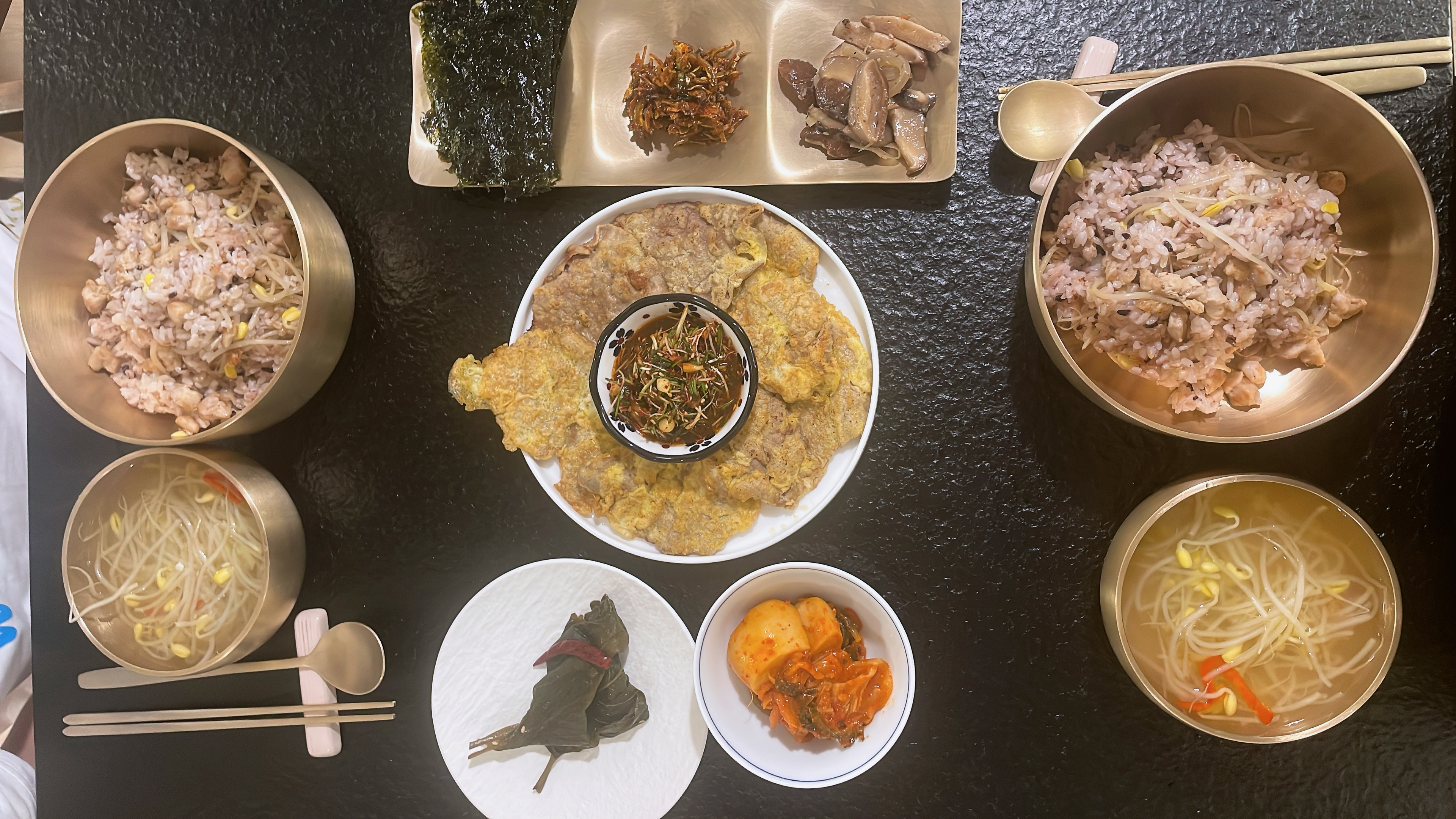 청소를 하고 향좋은 달래장에 밥을 먹어야지!!!!! 하고 고기볶아 콩나물 밥, 육전 몇장 구워 밥을 먹고 씻고 준비를 한다.