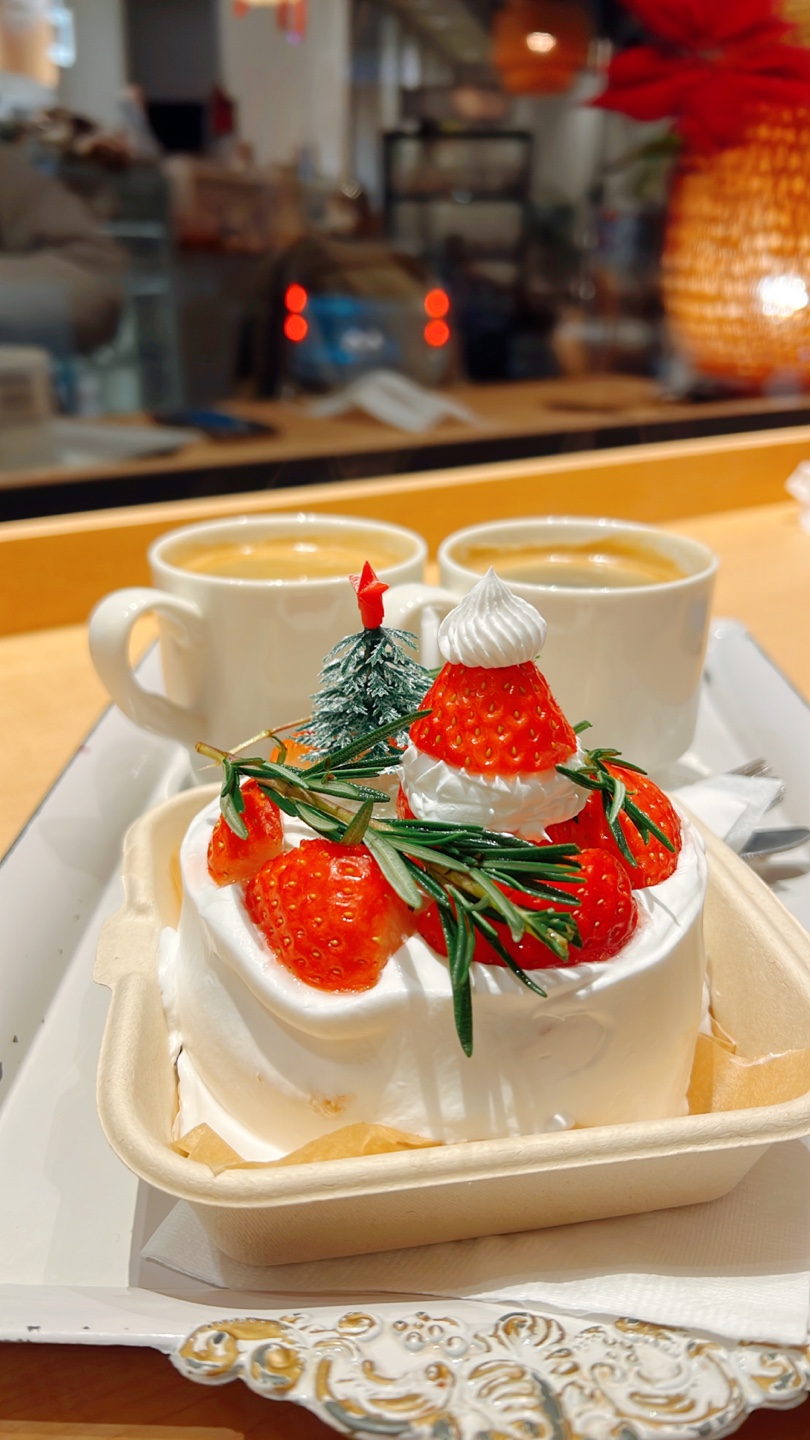 따뜻한 아메리카노 두잔, 생크링딸기케이크를 주문하고 자리를 잡고 나란히 이 순간을 기록한다.