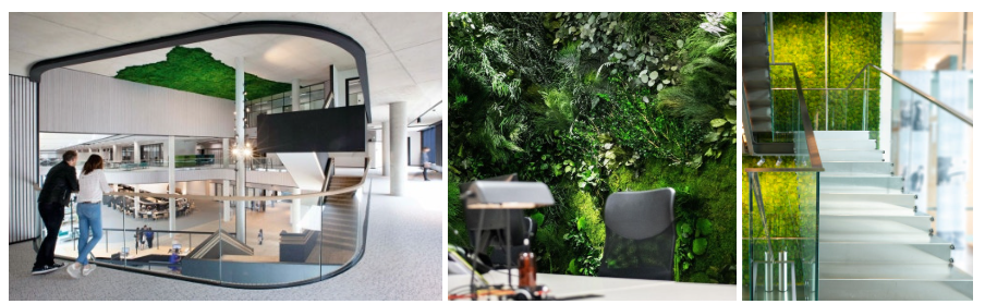 - 지데스크(G-Desk) : 이끼로 덮인 스탠드형 책상 분리대로, 사무실 환경에 녹색 감성을 더하고 흡음 기능도 제공합니다.