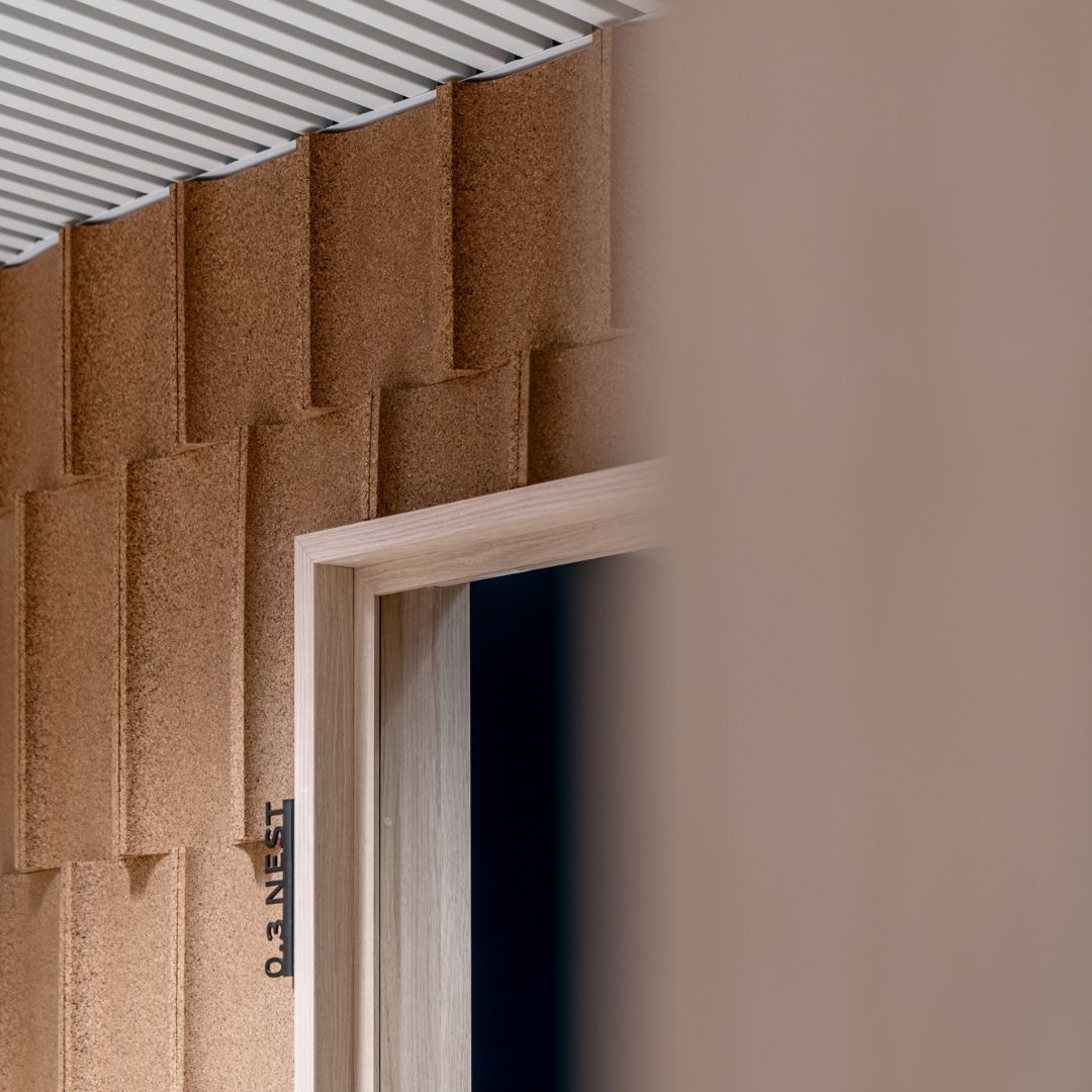 Acoustic solutions product range combining the benefits of natural cork with unique designs, by and for professionals.